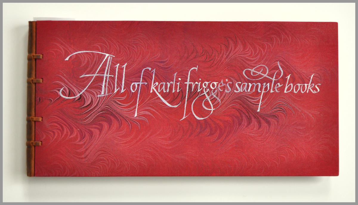 samples; 310 samples of 7 1,2 x 1 3,8 inches and 39 samples of 7 1,2 x 3 inches. It is bound by Karli herself in marbled cloth, with